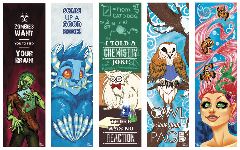 Illustrative bookmarks for Scholastic/Tangerine Press